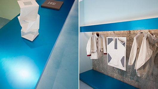 החלל הקונספטואלי החדש שתכנן האדריכל והמעצב טוקוג'ין יושיוקה עבור איסי מיאקי הוא היהלום שבכתר בשורת החנויות שמחזיק המעצב היפני האגדי ברחוב אאויאמה שבטוקיו, הכולל את כל הקווים המשניים הרבים של המעצב, בהם Pleats Please פורץ הדרך וקו הגברים. מעבדת המציאות, שעוצבה כמתבקש בקווים מינימליסטיים, כמעט סטריליים, אוצרת באופן משתנה פריטים מכל הקולקציות בחתימת המעצב. הרעיון המרכזי היה ליצור חוויית קנייה שיש בה משהו מתהליך המחקר וההתבוננות שנעשים במעבדה מדעית, עם תצוגה של גזרות הבגדים המקוריות, תלויות ממוסגרות לצד חלק מהפריטים עצמם, עם נברשות אוריגמי עצומות. התצוגה מרווחת ומסודרת לפי קבוצות של צבע וצורה, וכך מאפשרת לבחון את עקרונות העבודה המתמטיים של מיאקי. הפריטים עצמם מוצבים על מתלים שהורכבו בפשטות מלוחות אלומיניום, קירות הבטון החשופים מופיעים מאחוריהם בחלק מהמקרים, ונגיעות עזות של צבעי ירוק דשא ומרין עמוק מוסיפות מגע אנושי יותר. הפינות היפות ביותר בחנות מזמינות למקד את המבט בפריט יחיד של מיאקי הנתלה על סטנד מתכת, כמו שכמיית כותנה צחורה שתפריה הפנימיים הודבקו בסרטי גימור כהים. עיצוב חלל זה מעניק הרבה כבוד ליצירתיות ולמחשבה המרגשת של המעצב.