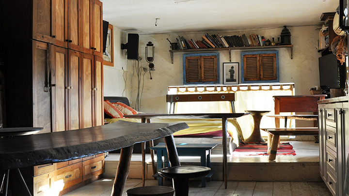 עוזי גבע הוא לא הטיפוס שייסע לאיקאה בשביל שולחן צד או מדף חלילה. גבע, חרש עץ המתגורר מעל הסדנה שבבעלותו בקצה המערבי של פלורנטין, בנה את ביתו בעצמו. חלל המגורים הקטן והחמים כמו גם הרהיטים והחפצים שבו עשויים כולם בעבודת יד ובטכניקות מסורתיות, רובם מעץ ממוחזר וגושני, ומדגימים היטב פתרונות אדריכליים ועיצוביים ספונטניים, יצירתיים ואותנטיים.