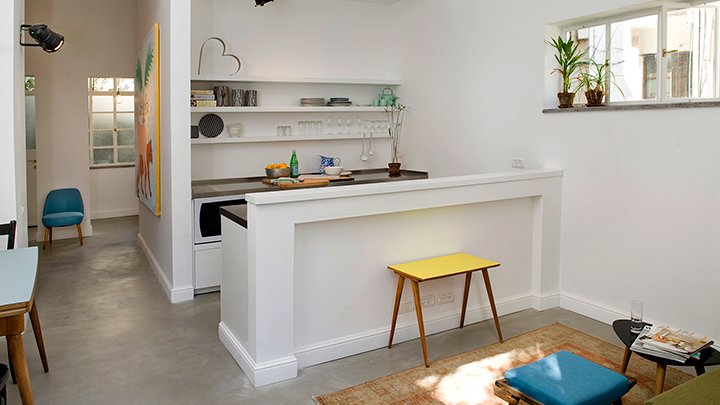 העיר הזאת כבר ראתה בחייה דירה קטנטנה אחת או שתיים ומיני פתרונות מגורים שונים – מרתף, מחסן, מטבח בחצר, מיטה בחדר כביסה ועוד – ודווקא בשל כך ועל רקע הג'ונגל החוליגני שנקרא גם שוק הדירות התל אביבי, דירת הלופט הפיצית שעיצב סטודיו GOLANALON ברחוב יהודה הלוי היא פנינת חמד של ממש בת 47 מ"ר בקומת קרקע של בניין משנות ה־30. רק לפני שנה חזרה הדירה לייעודה המקורי לאחר ששימשה במשך שנים כסטודיו לתכשיטים. חלוקת חלל חכמה יחד עם עיצוב פנים מינימליסטי ויציאה ישירה לרחוב ולחצר האחורית מקנים לה אופי אורבני נעים ומתוחכם, ומוכיחים שוב שהגודל לא קובע.