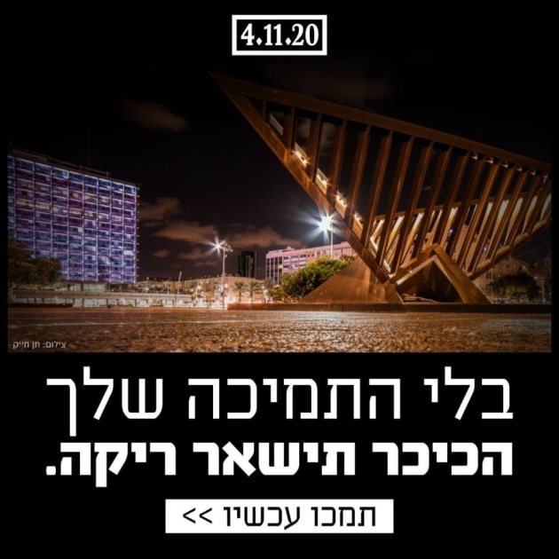 ישראל חוזרת לכיכר: עצרת הזיכרון המרכזית תיערך השנה לראשונה ב-4.11, תאריך הירצחו של רה"מ יצחק רבין ז"ל. מארגני העצרת פנו למימון המונים לאחר שהממשלה סירבה להשתתף בעלויות